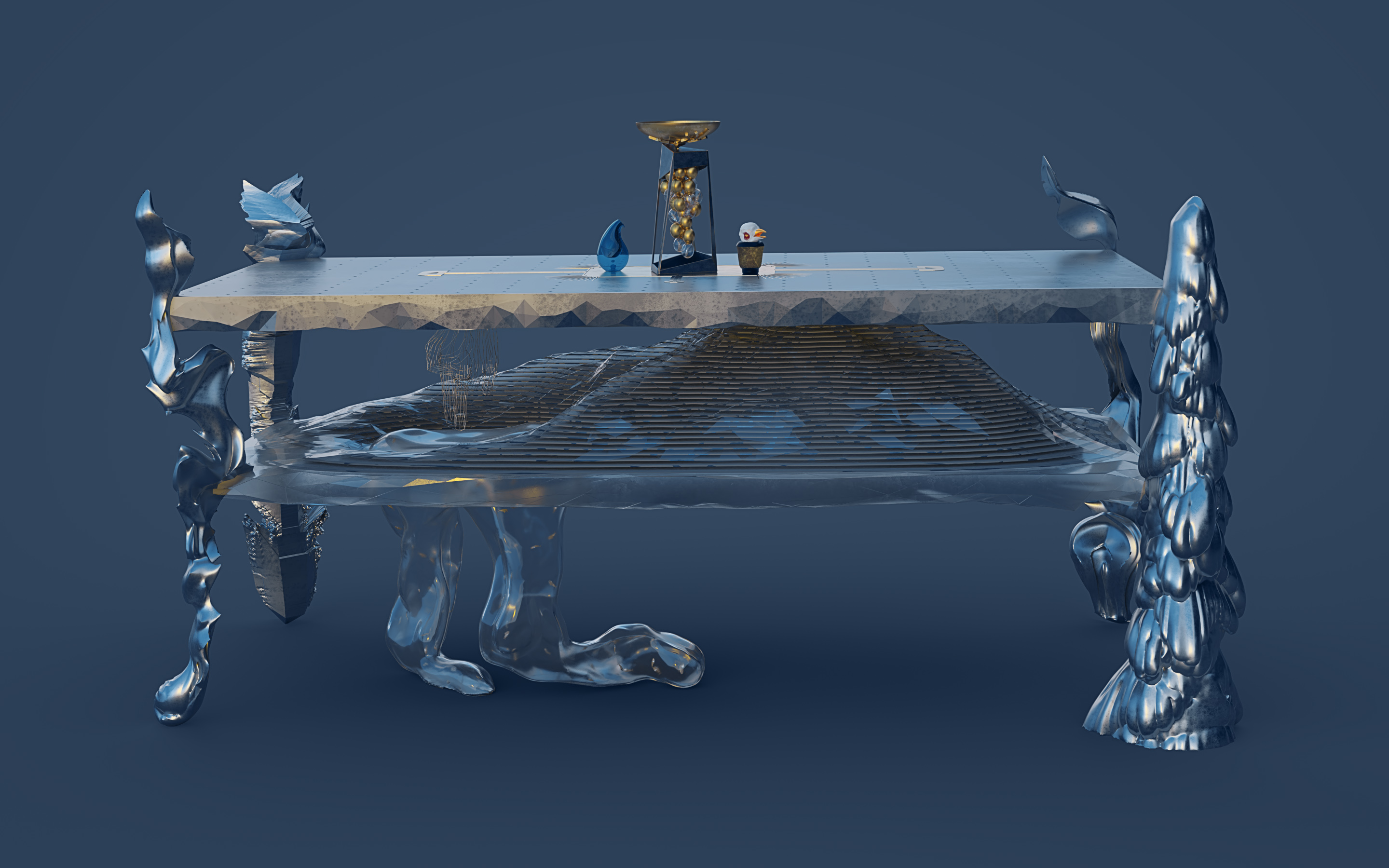 D'abord 4 images de la table, 1 image d'un éclaté de la table pour mieux voir les différentes parties, puis 4 images des pieds de table . Air , eau, feu, terre.